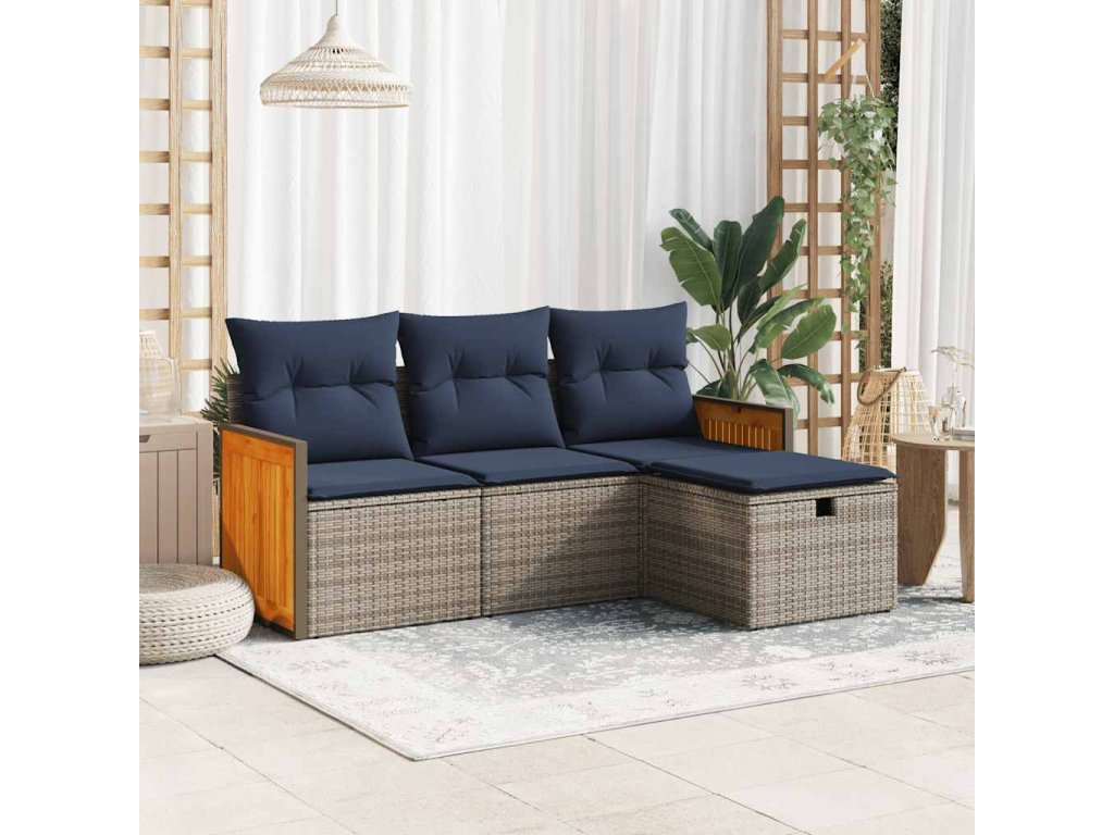 4dílná zahradní sedací souprava s poduškami šedá polyratan 3326009