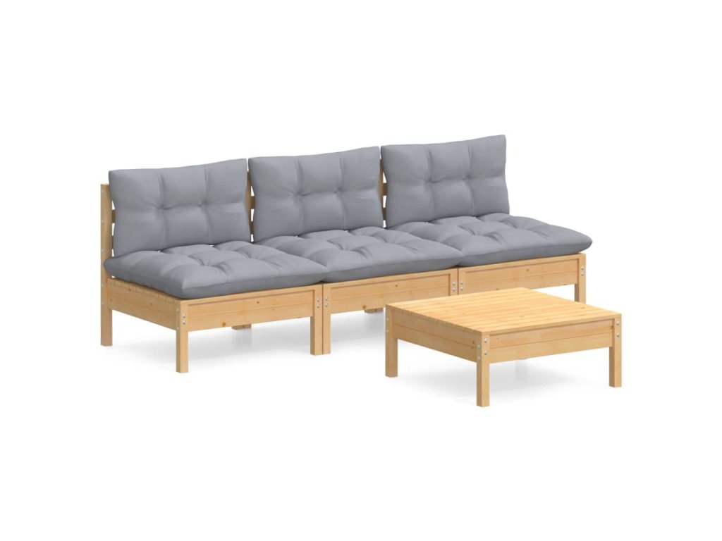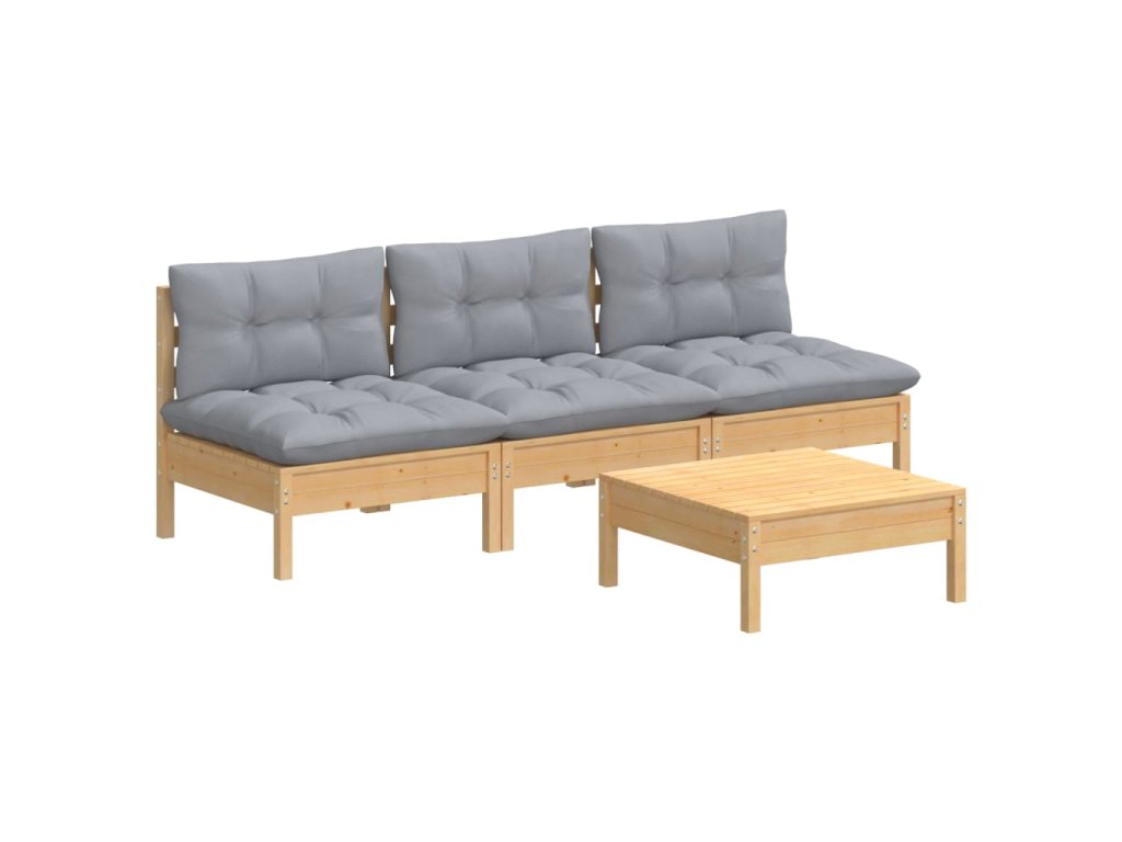 4dílná zahradní sedací souprava s šedými poduškami borovice 3096081