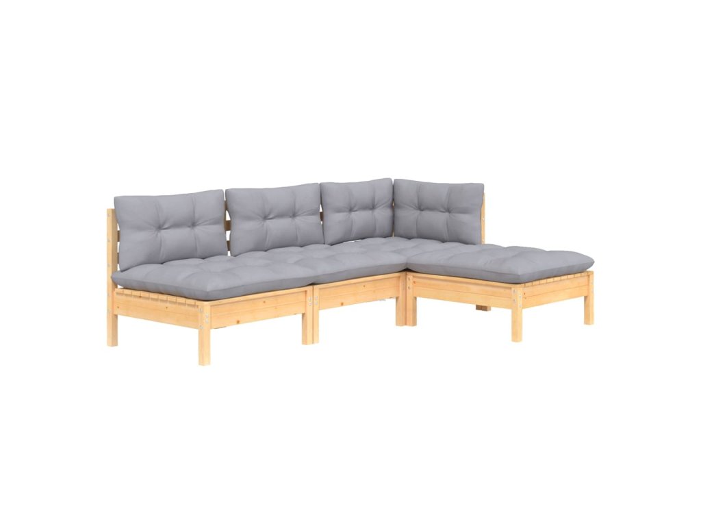 4dílná zahradní sedací souprava s šedými poduškami borovice 3096297