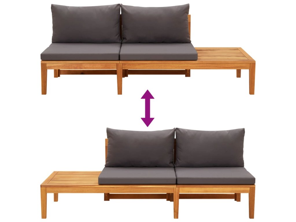 Zahradní nábytek je zhotovený z masivního akáciového dřeva, je proto mimořádně odolný a výborně vzdoruje rozmarům počasí. V kombinaci s hustě polstrovanými poduškami vám navíc souprava poskytne maximální pohodlí. Stůl, který skvěle ladí s lavicí, je možné připojit na levou nebo pravou stranu v závislosti na vašich potřebách. Tuto sedací sestavu můžete také kombinovat s dalšími modulárními díly, a vytvořit si tak zahradní posezení podle vašich představ!