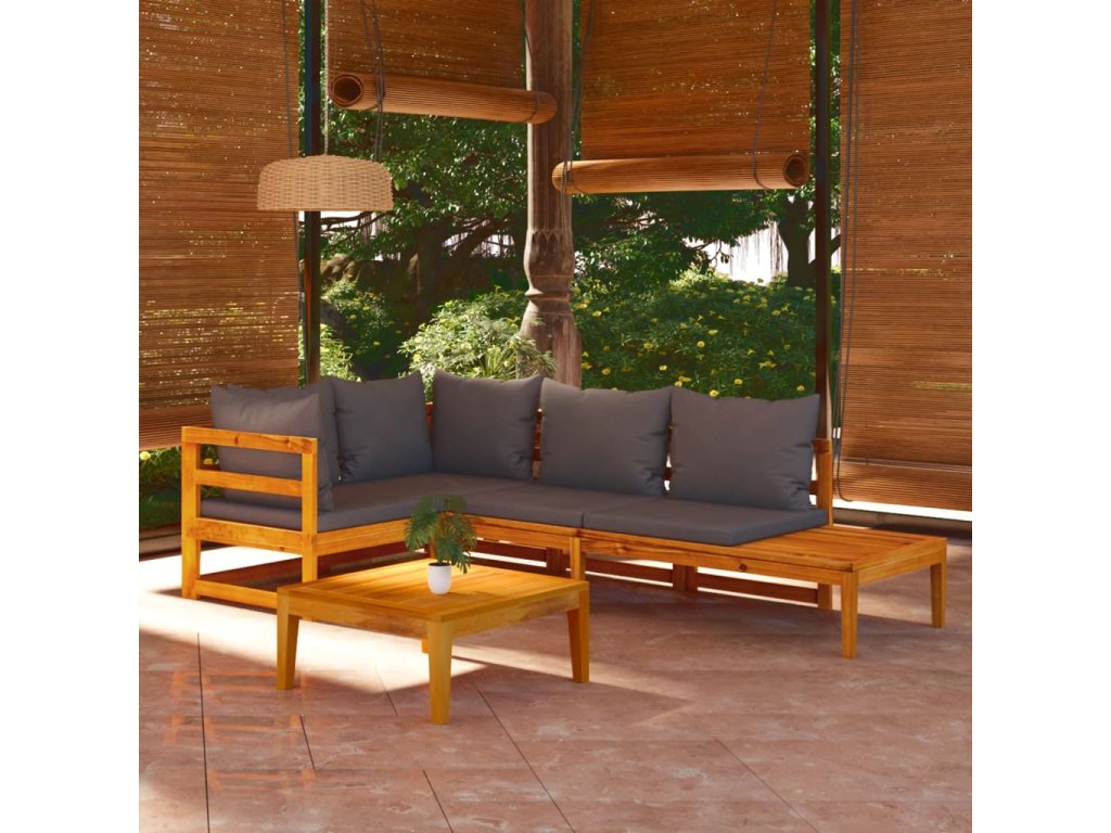 4dílná zahradní sedací souprava s tmavě šedými poduškami akácie 3087277
