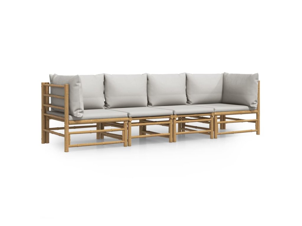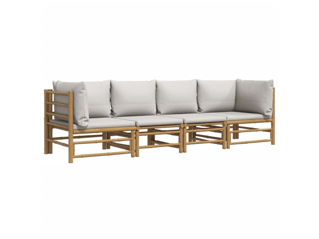 4dílná zahradní sedací souprava světle šedé podušky bambus 3155088
