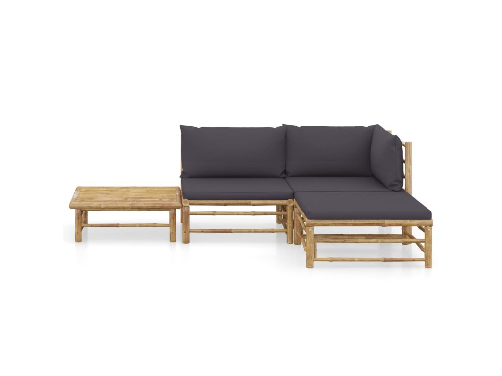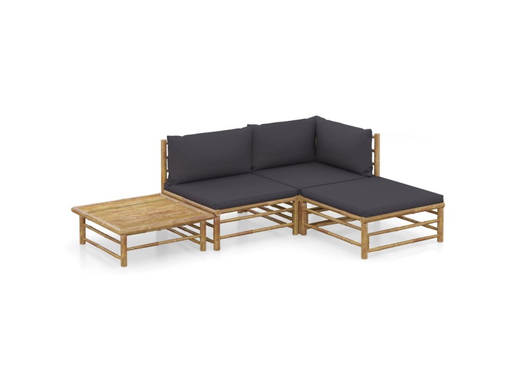 4dílná zahradní sedací souprava + tmavě šedé podušky bambus 3058190