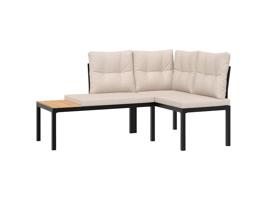 4dílná zahradní sestava a podušky černá práškově lakovaná ocel 3283669