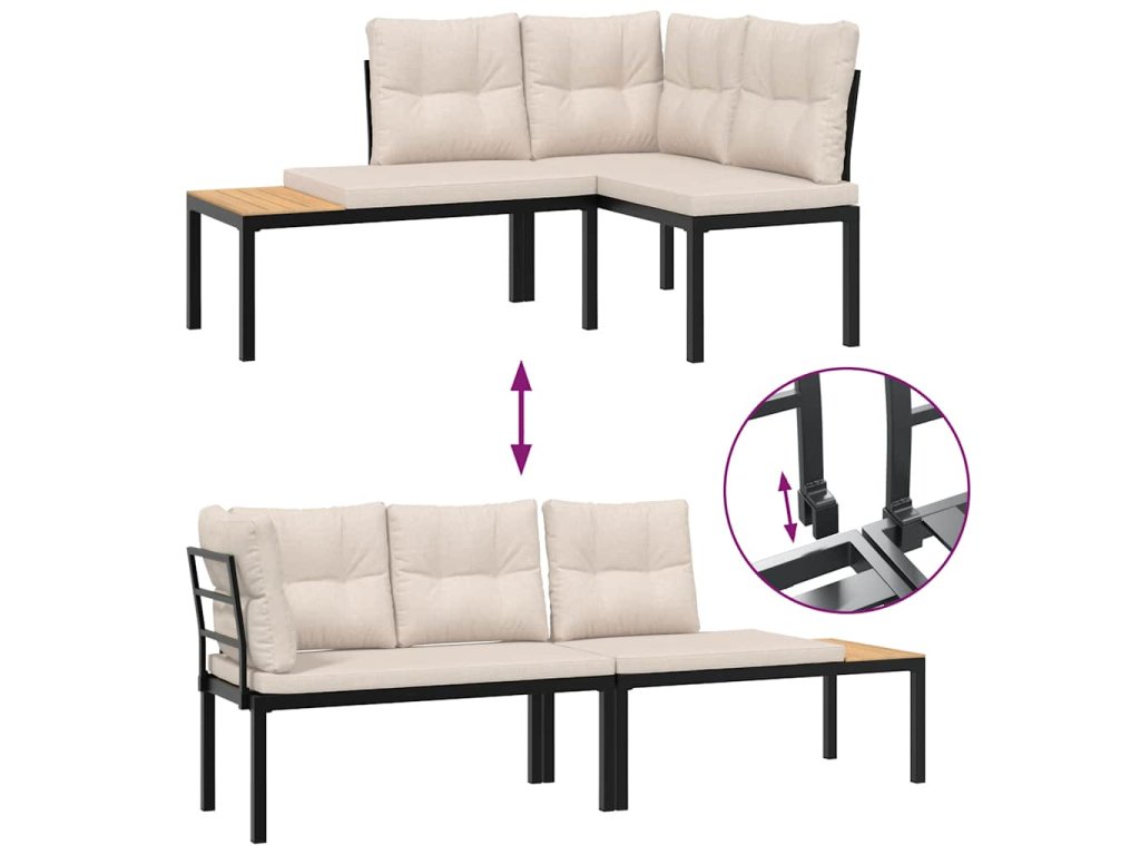 - Modulární design: Tato sada venkovního nábytku se vyznačuje modulární konstrukcí, je tedy zcela flexibilní a lze ji snadno přemisťovat, takže si můžete uspořádat venkovní nábytek dle vašich potřeb.