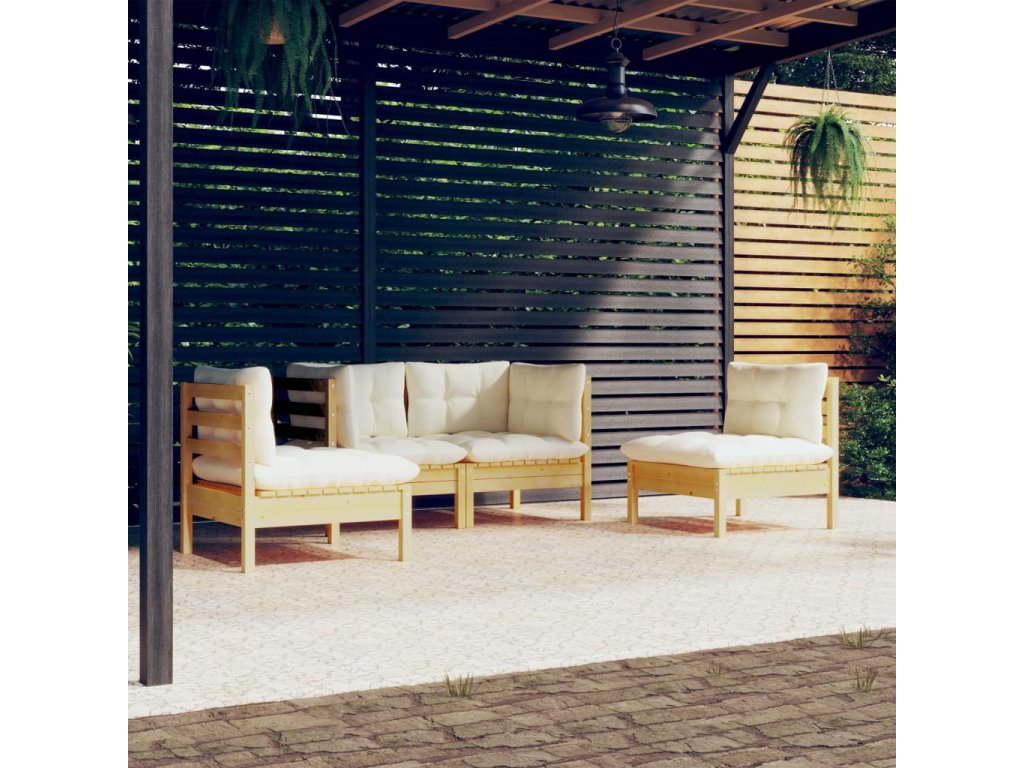 4dílná zahradní souprava krémové podušky masivní borovice 3096172