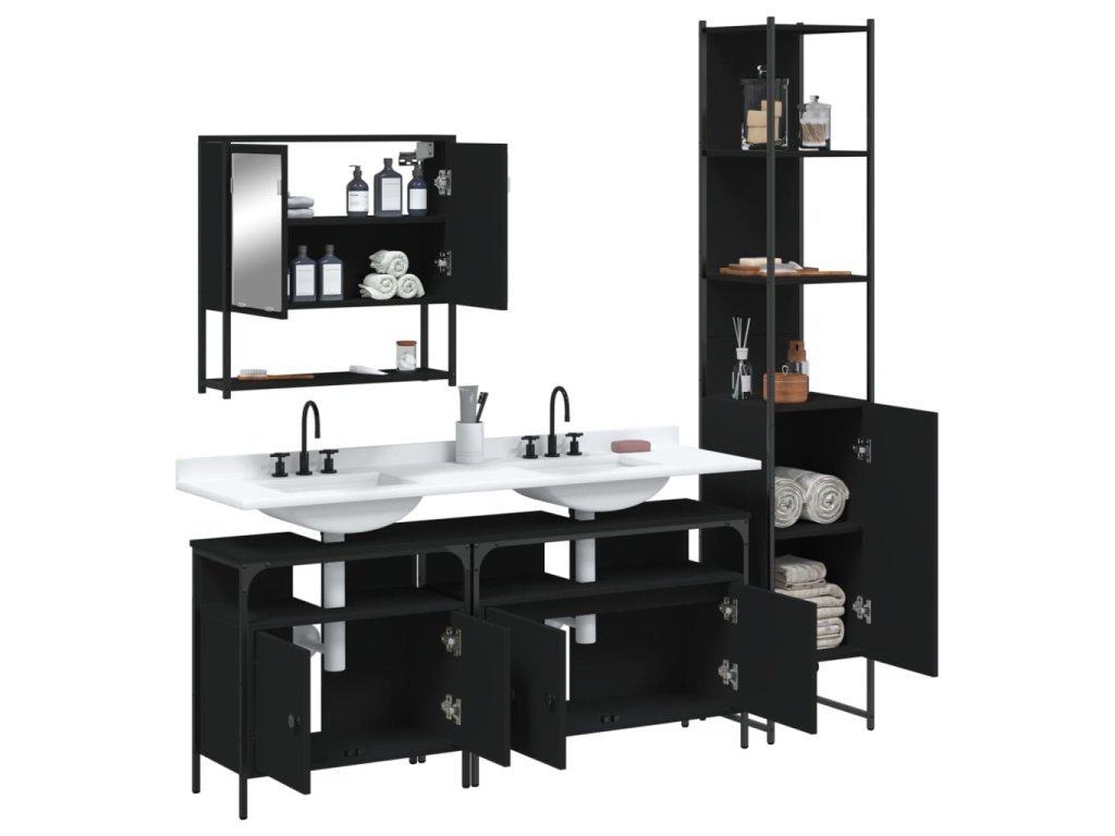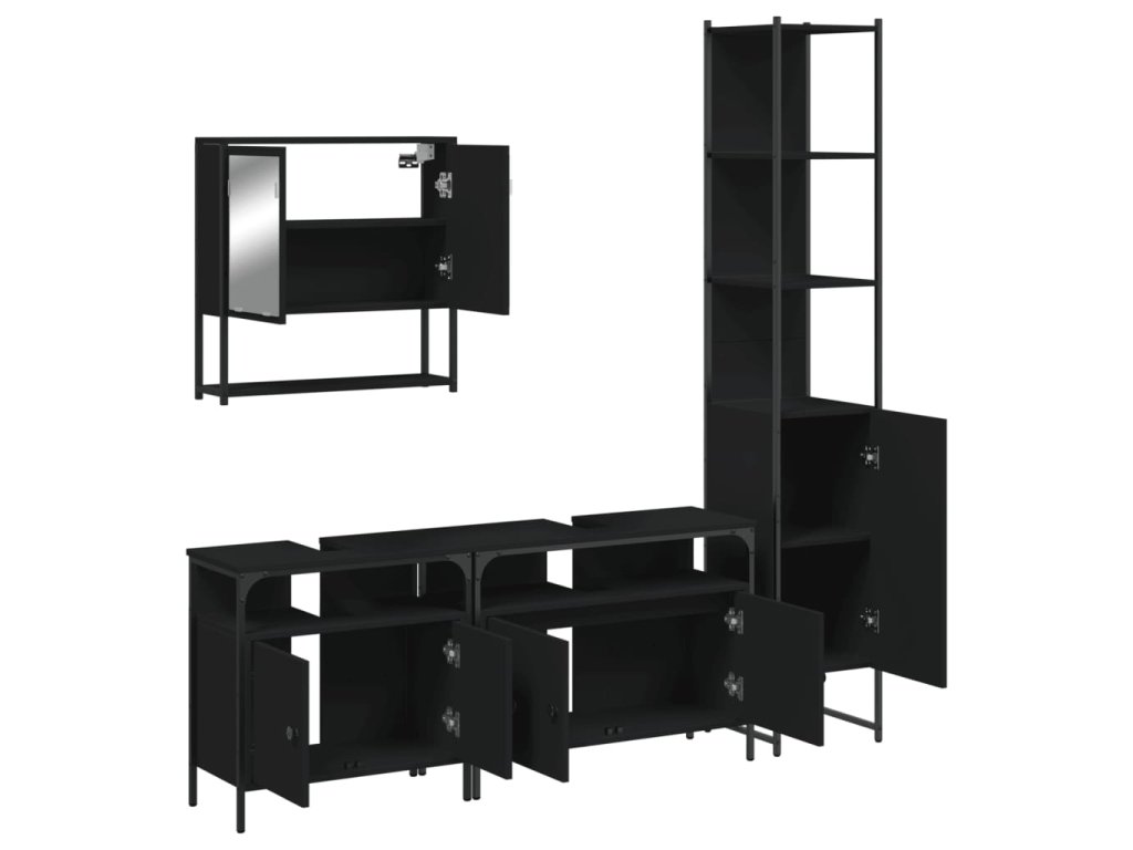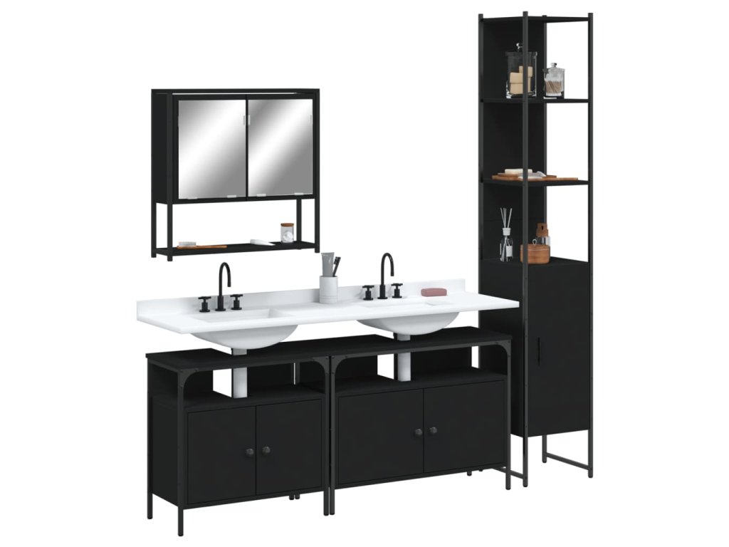 4dílný set koupelnového nábytku černý kompozitní dřevo 3214685