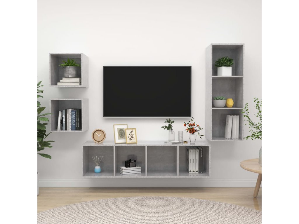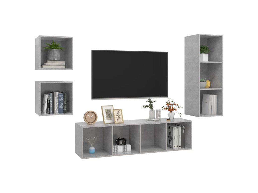 4dílný set TV skříněk betonově šedý dřevotříska 3079776