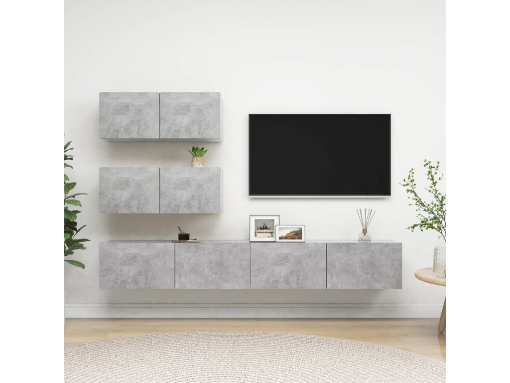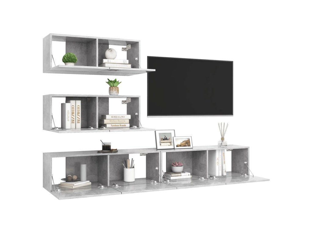 4dílný set TV skříněk betonově šedý kompozitní dřevo 3079131