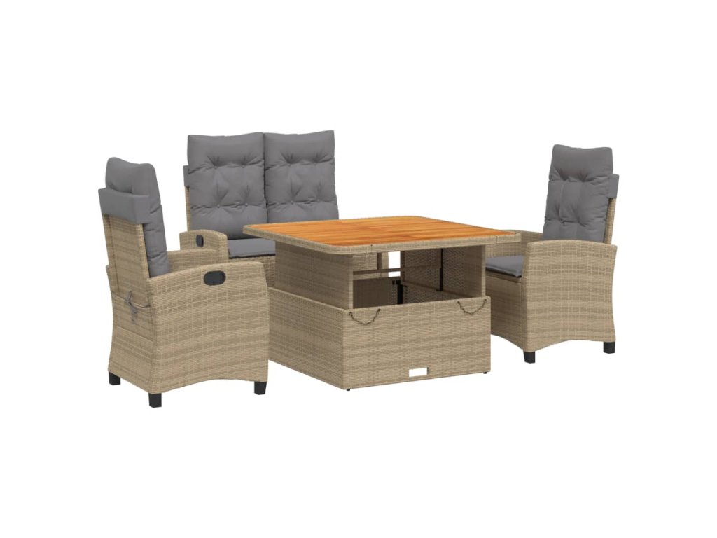 4dílný zahradní jídelní set s poduškami béžový polyratan 3277428