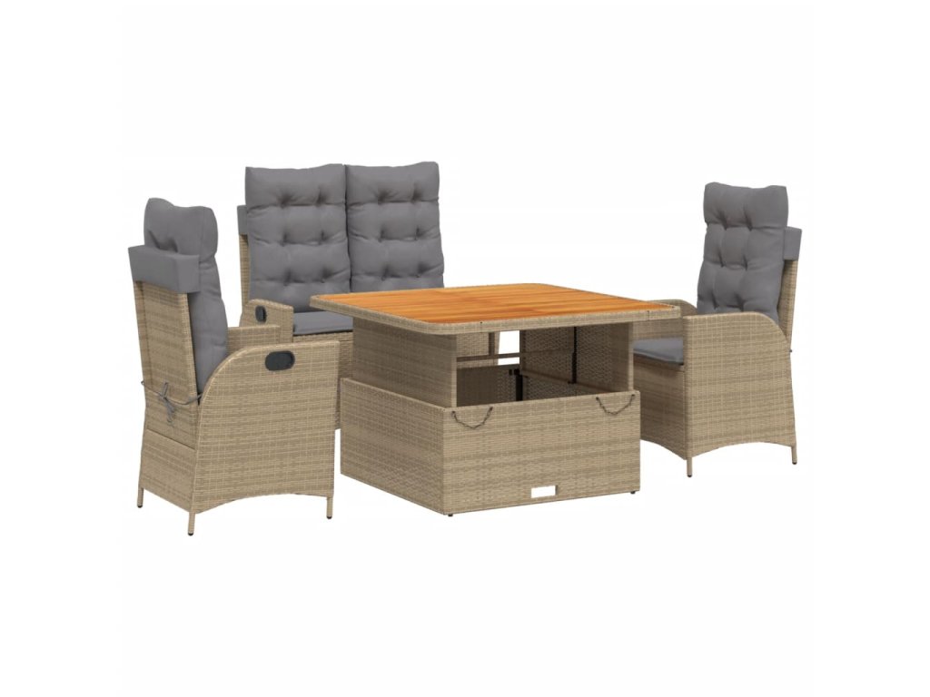 4dílný zahradní jídelní set s poduškami béžový polyratan 3277488