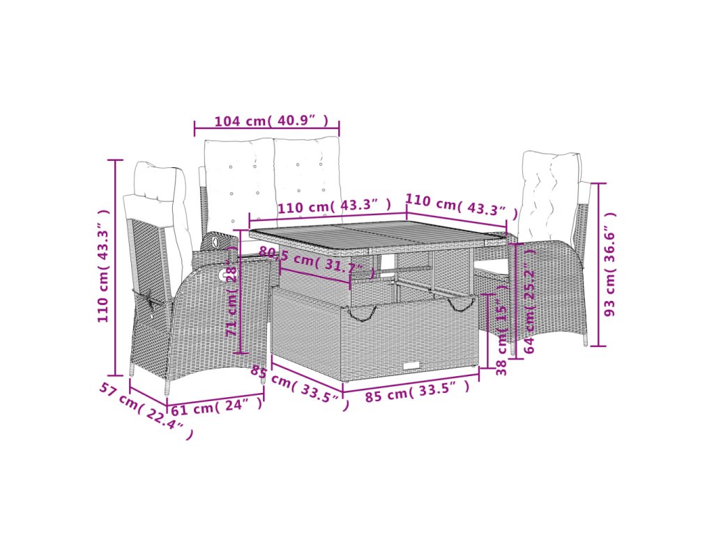 - Rozměry stolku: 110 x 110 x 40/71 cm (D x Š x V)
