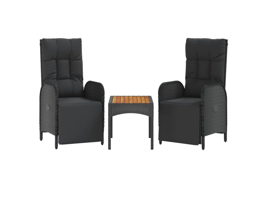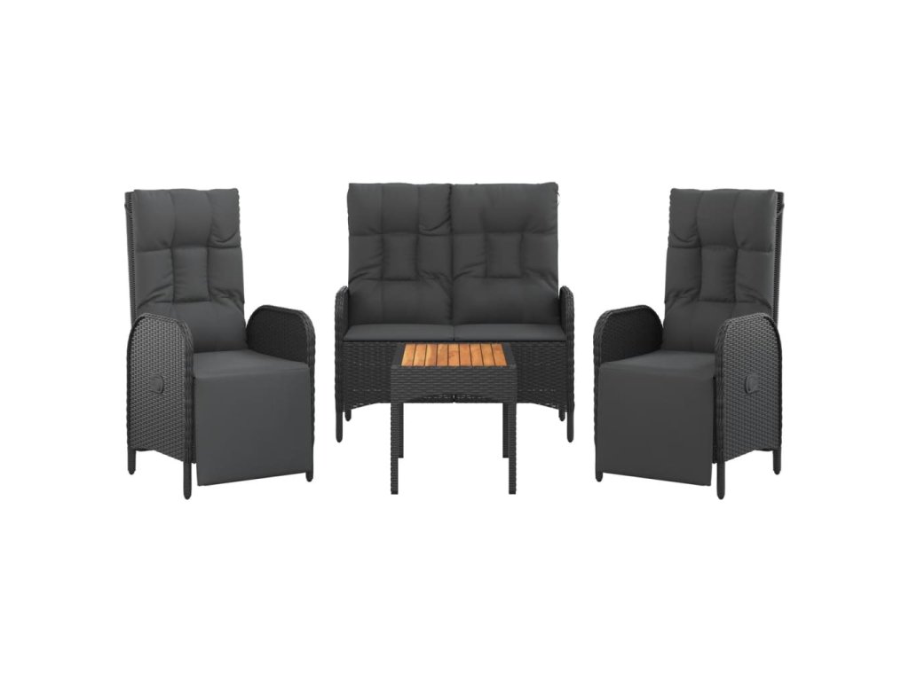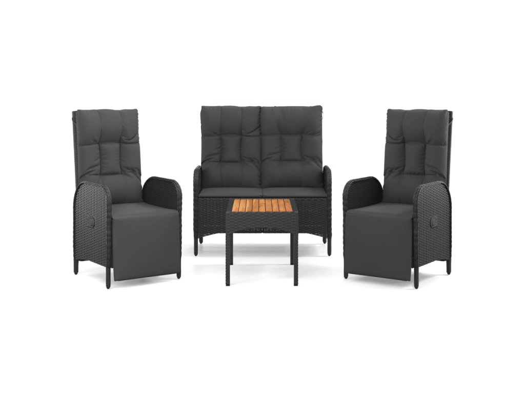 4dílný zahradní jídelní set s poduškami černý polyratan 3185086