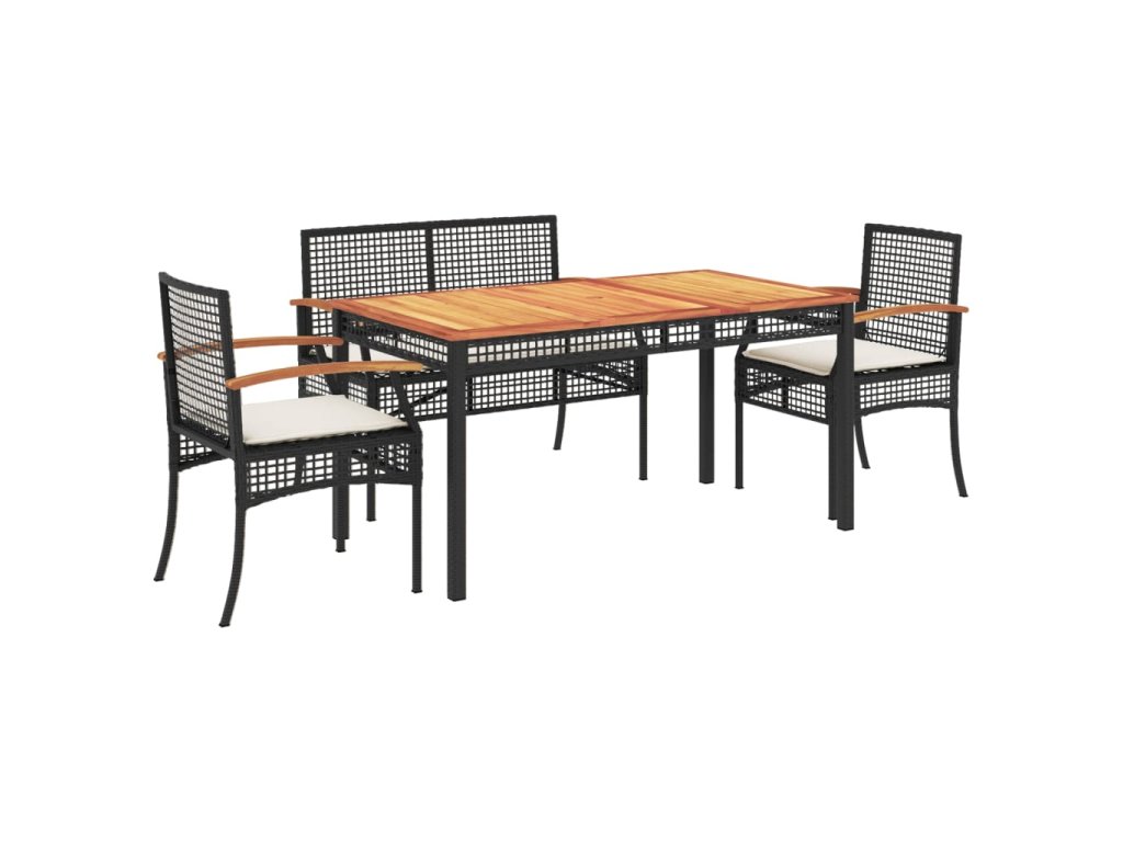 4dílný zahradní jídelní set s poduškami černý polyratan 3213567