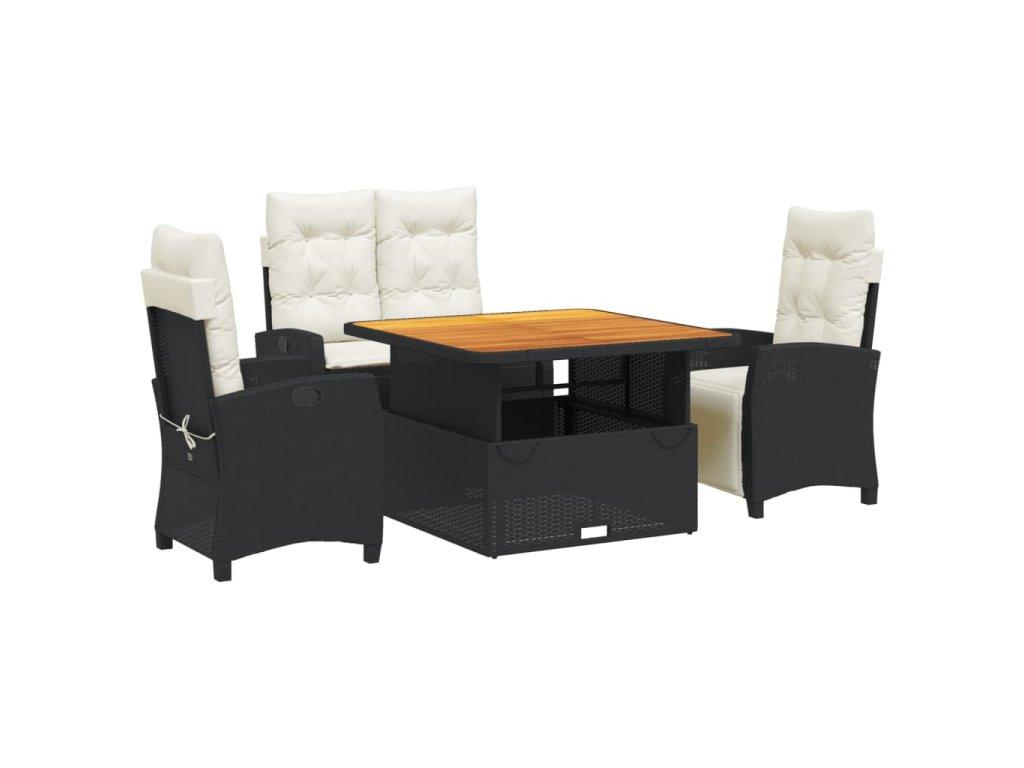 4dílný zahradní jídelní set s poduškami černý polyratan 3277381