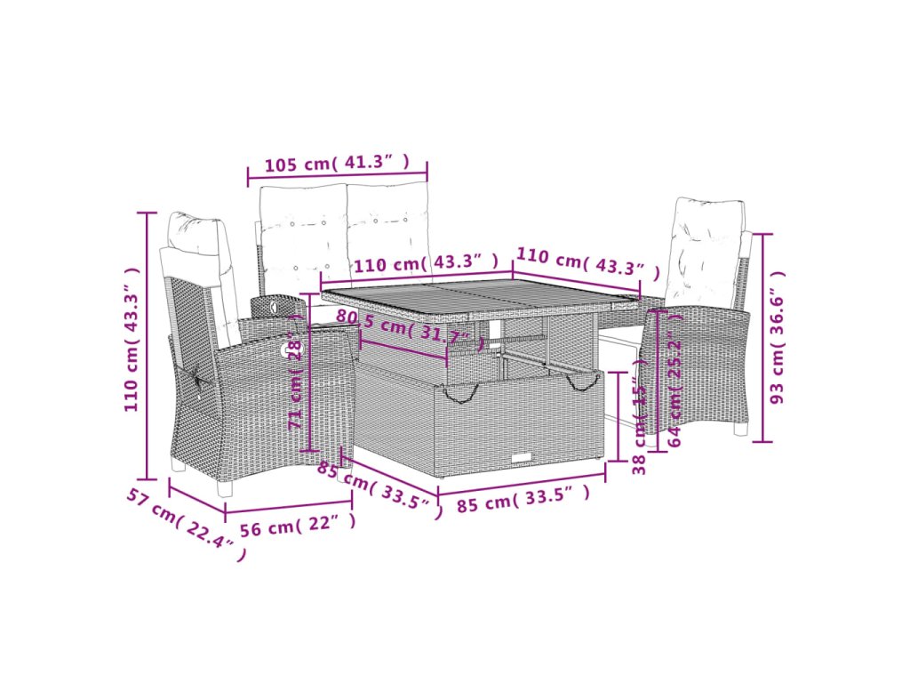 - Rozměry stolku: 110 x 110 x 40/71 cm (D x Š x V)