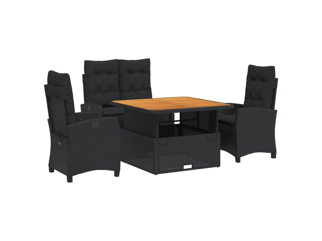 4dílný zahradní jídelní set s poduškami černý polyratan 3277392