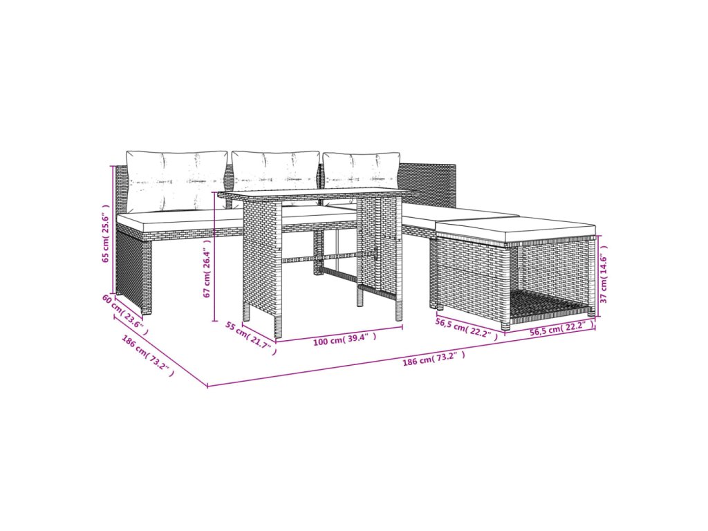 4dílný zahradní jídelní set s poduškami šedá polyratan 311914