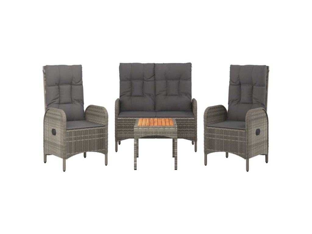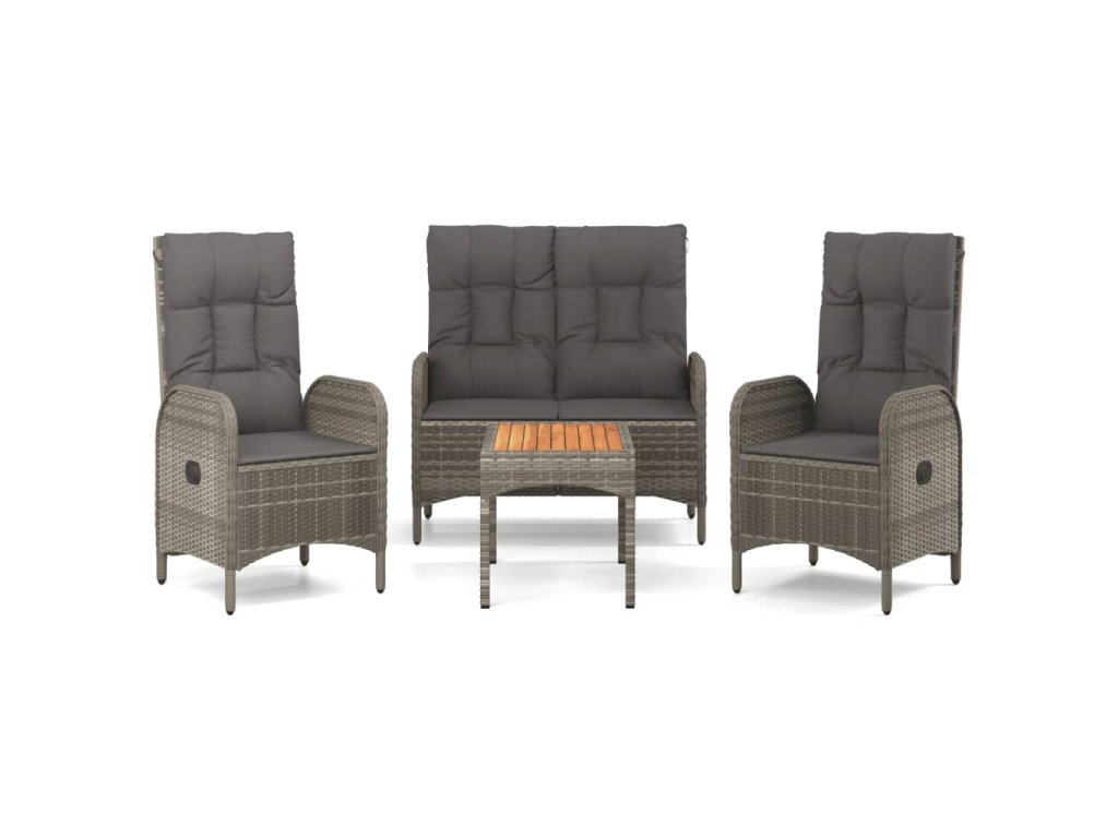 4dílný zahradní jídelní set s poduškami šedá polyratan 3185083