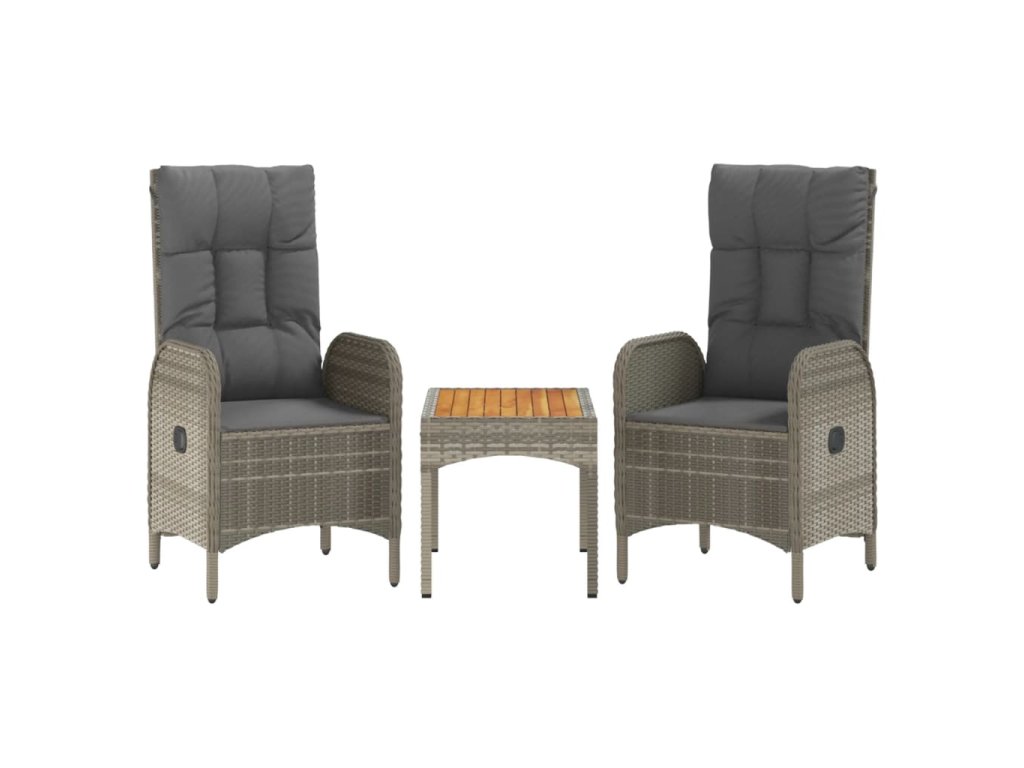 - Materiál: masivní akáciové dřevo s olejovou povrchovou úpravou, PE ratan, práškově lakovaná ocel