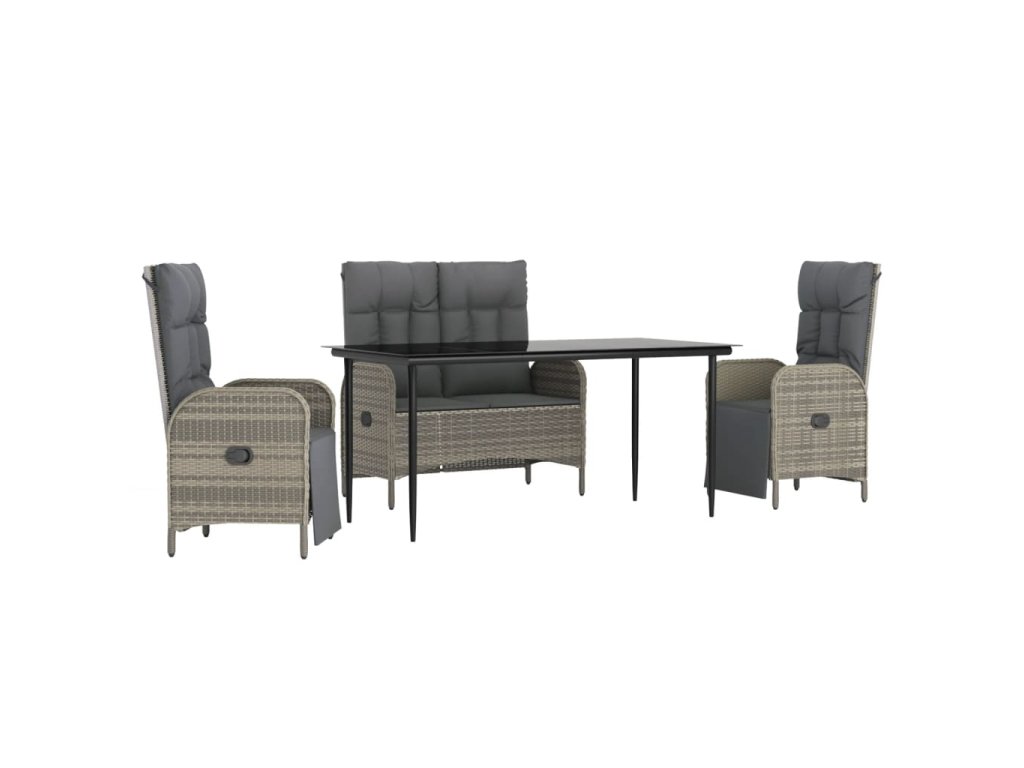 4dílný zahradní jídelní set s poduškami šedá polyratan 3203504