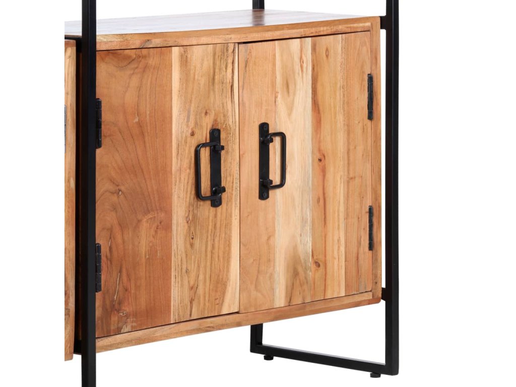 Knihovna má pevný železný rám s práškovým nástřikem, který jí dodává industriální vzhled. Retro poličky jsou vyrobené z masivního akáciového dřeva, což je tropické tvrdé dřevo s nádhernou kresbou, které je odolné vůči vlivům počasí a vyznačuje se dlouhou životností. Každý krok výrobního procesu je prováděný s největší péčí, ať už se jedná o leštění, natírání nebo lakování. Řemeslné zpracování a zajímavá kresba dřeva dává každému kusu nábytku charakteristický a od všech ostatních lehce odlišný charakter. Výběr kusu k dodání je náhodný.
