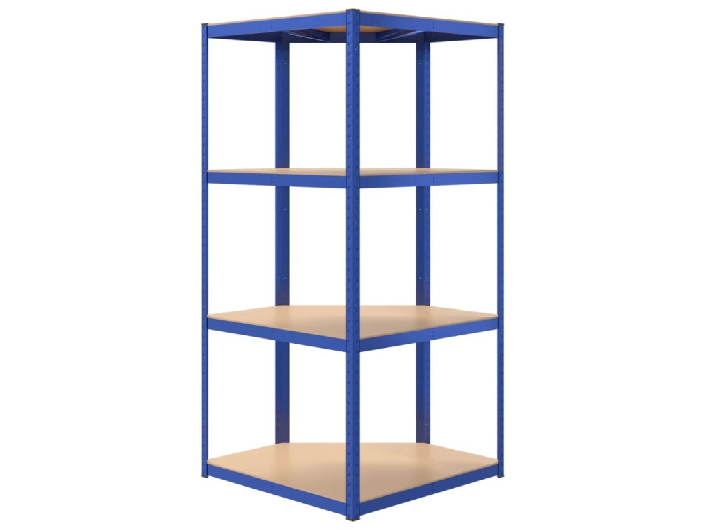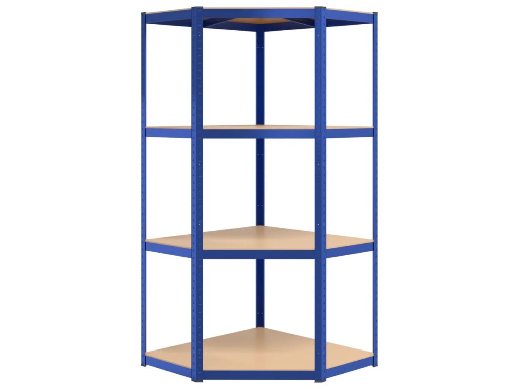 4patrový rohový regál modrý ocel a kompozitní dřevo 152852