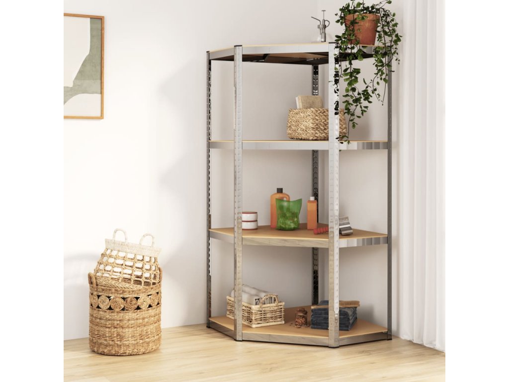 4patrový rohový regál stříbrný ocel a kompozitní dřevo 152851