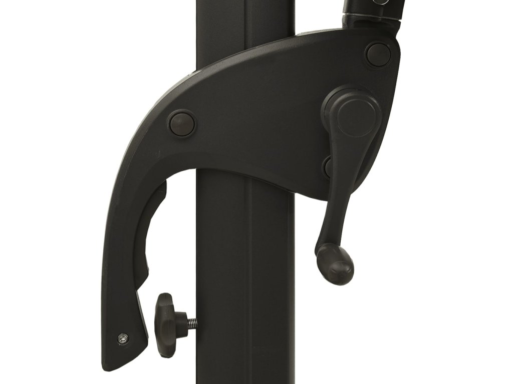 Zahradní slunečník je vyrobený polyesteru, který je odolný vůči UV a blednutí barev a poskytne vám optimální ochranu proti slunci. Stabilitu zajišťují práškově lakovaná hliníková tyč a žebra. Slunečník je vybavený klikovým mechanismem a funkcí naklápění, je skládací a přenosný. Můžete ho zasadit do svého stávajícího stojanu nebo doprostřed stolů s otvorem na slunečník.
