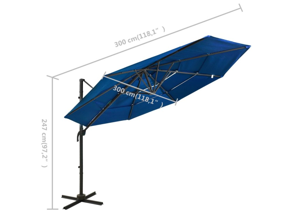 4stupňový zahradní slunečník s hliníkovou tyčí azurový 3 x 3 m 313835