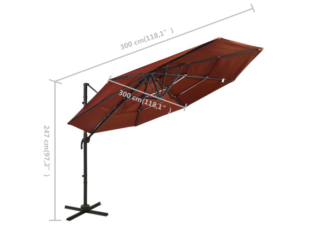 4stupňový zahradní slunečník s hliníkovou tyčí terakota 3 x 3 m 313833