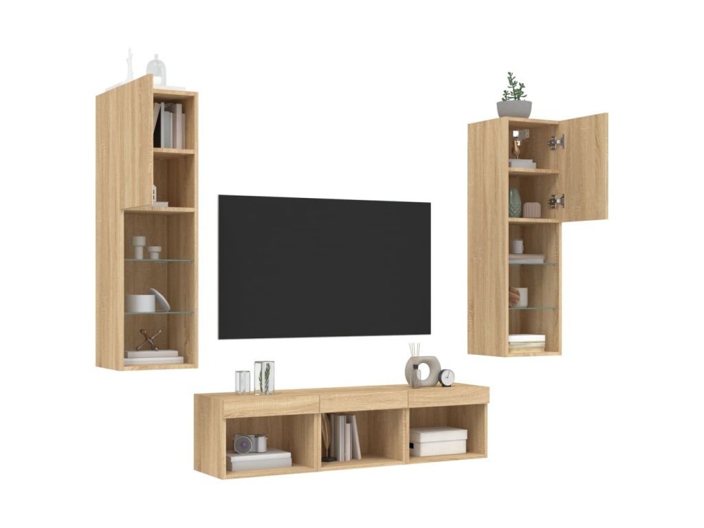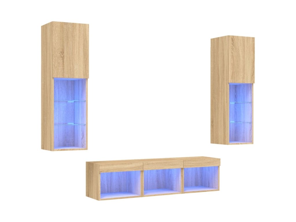 5dílná obývací stěna s LED dub sonoma kompozitní dřevo 3216606