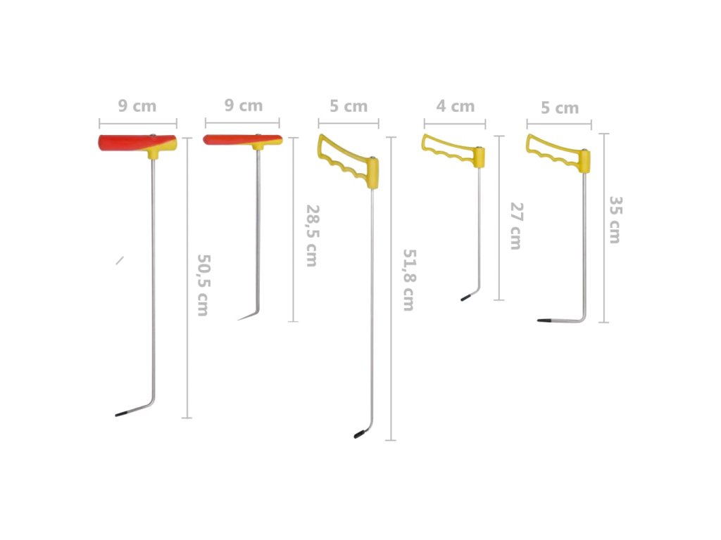 Sada obsahuje 5 pák na opravu promáčklin bez poškození laku.