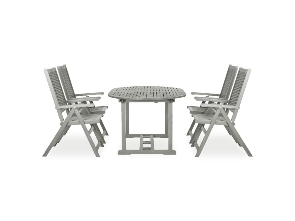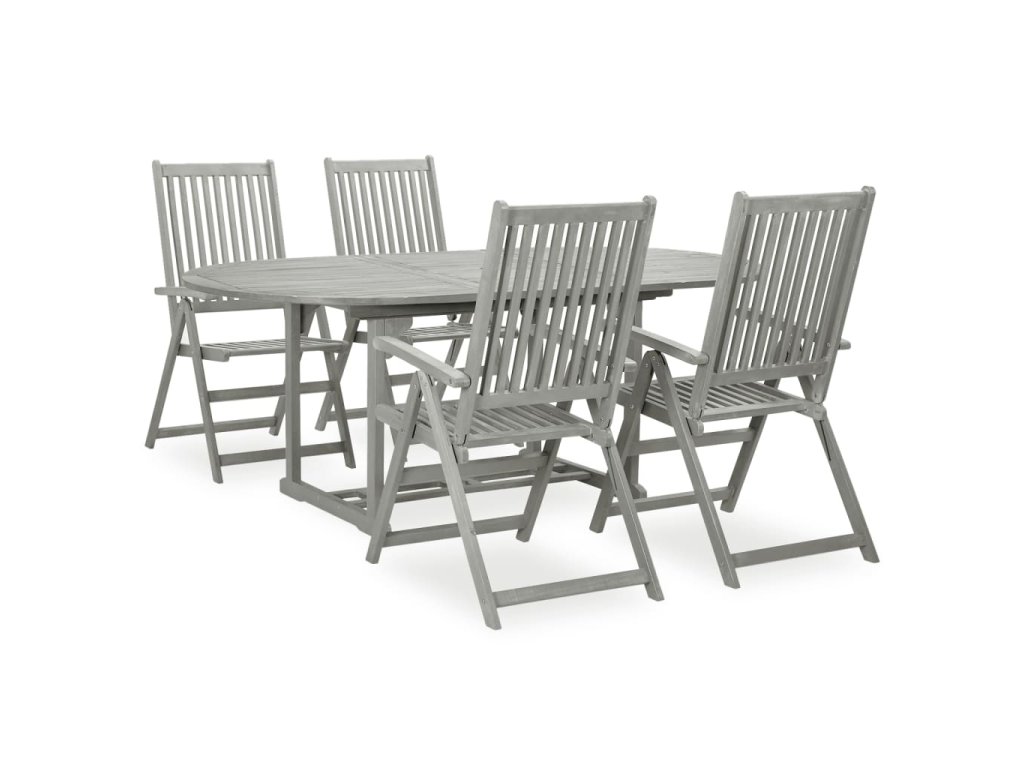 5dílná zahradní jídelní sada (150-200) x 100 cm masivní akácie šedá 3057907