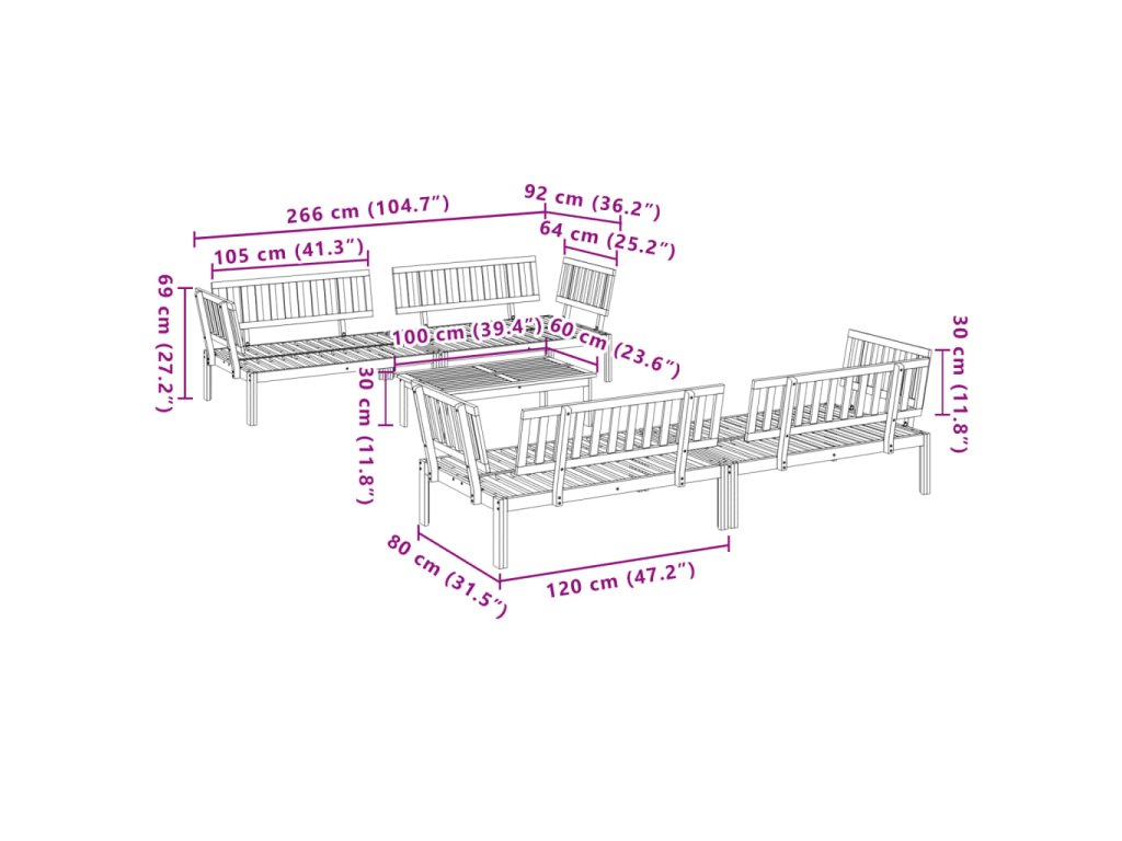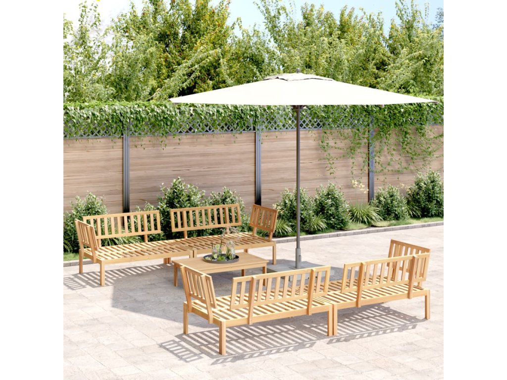 - Odolný materiál: Masivní akáciové dřevo je nádherný přírodní materiál. Akáciové dřevo je tropické tvrdé dřevo, které má hustou strukturu a je pevné a odolné. Je napuštěné olejem, souprava je proto vhodná pro venkovní použití.