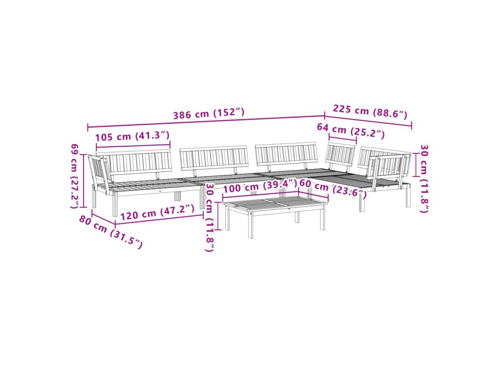 - Modulární design: Tato sada venkovního nábytku se vyznačuje modulární konstrukcí, je tedy zcela flexibilní a lze ji snadno přemisťovat, takže si můžete uspořádat venkovní nábytek dle vašich potřeb.