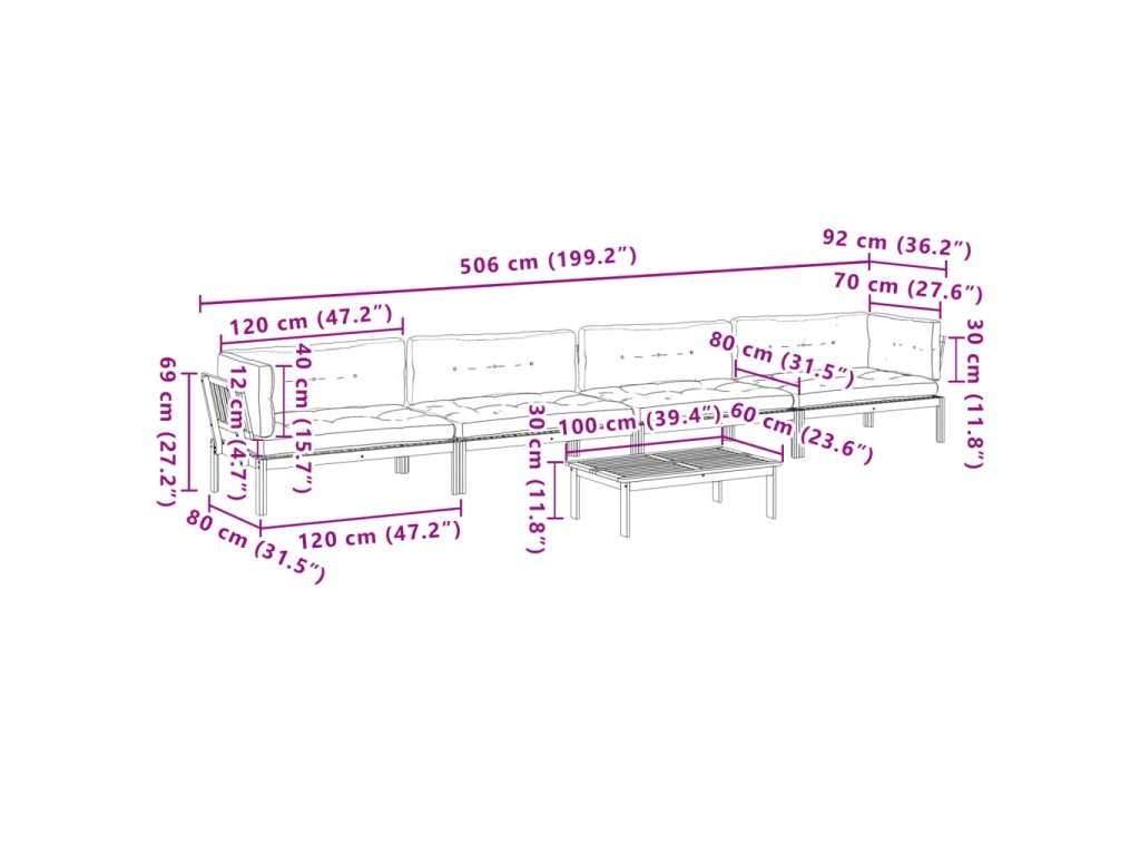 5dílná zahradní paletová sedací souprava podušky masivní akácie 3209379