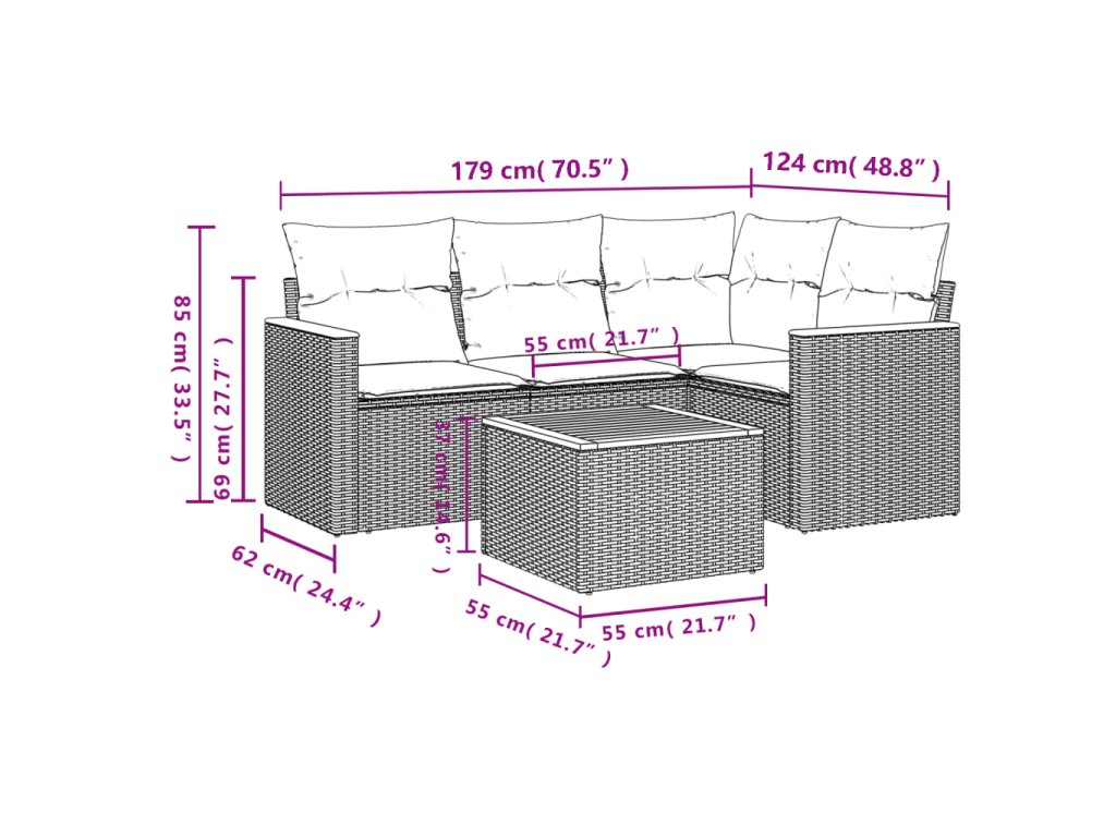 Tato zahradní sedací souprava je dokonalým doplňkem vaší zahrady, terasy nebo dvorku a poskytne vám pohodlné a příjemné místo, kde si můžete povídat s rodinou a přáteli nebo jen tak odpočívat a užívat si pobyt venku.