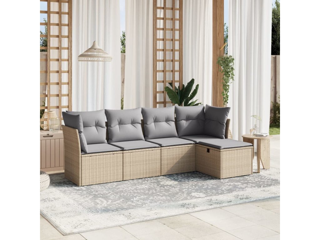 5dílná zahradní sedací souprava a podušky mix béžové polyratan 3263135