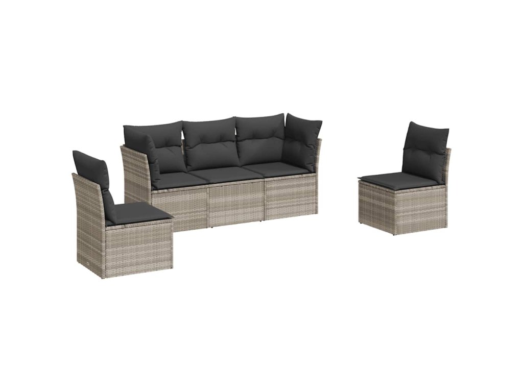 5dílná zahradní sedací souprava a podušky světle šedá polyratan 3217352