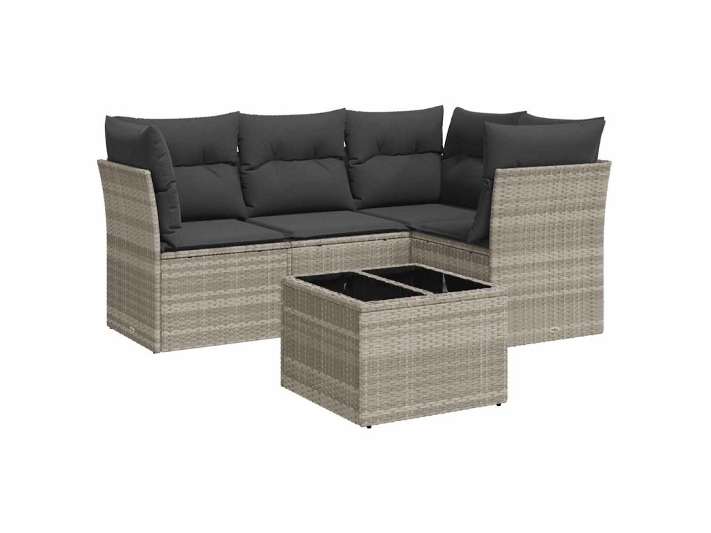 5dílná zahradní sedací souprava a podušky světle šedá polyratan 3217592