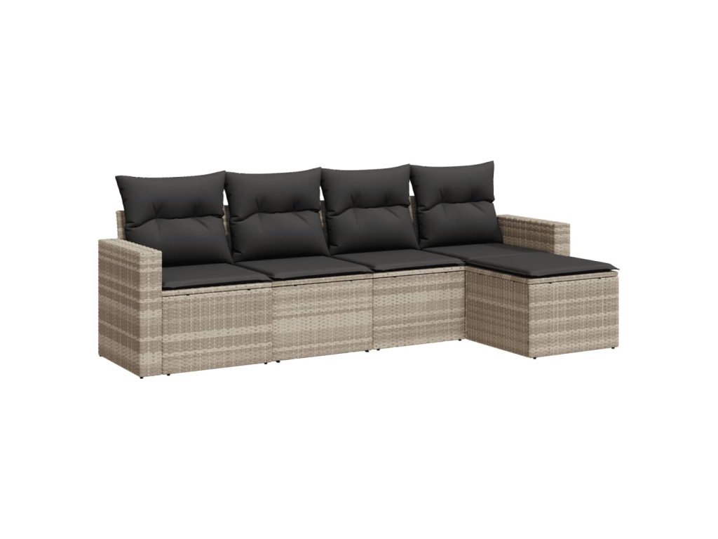 5dílná zahradní sedací souprava a podušky světle šedá polyratan 3218882
