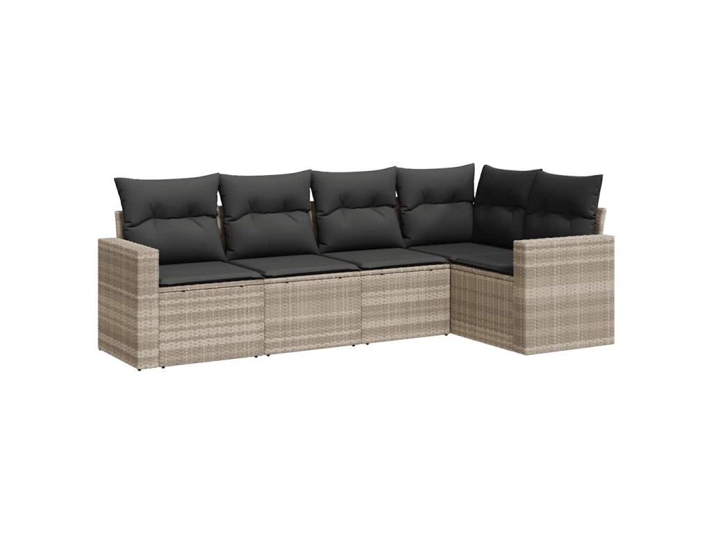 5dílná zahradní sedací souprava a podušky světle šedá polyratan 3218922