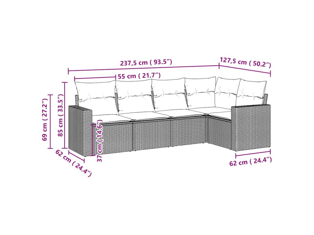 Tato zahradní sedací souprava je dokonalým doplňkem vaší zahrady, terasy nebo dvorku a poskytne vám pohodlné a příjemné místo, kde si můžete povídat s rodinou a přáteli nebo jen tak odpočívat a užívat si pobyt venku.