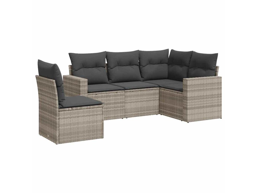 5dílná zahradní sedací souprava a podušky světle šedá polyratan 3218962