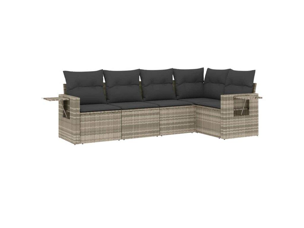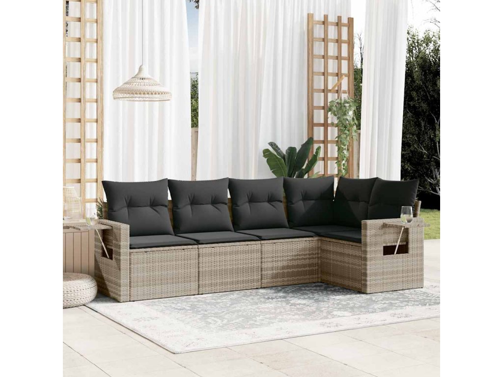 5dílná zahradní sedací souprava a podušky světle šedá polyratan 3220131