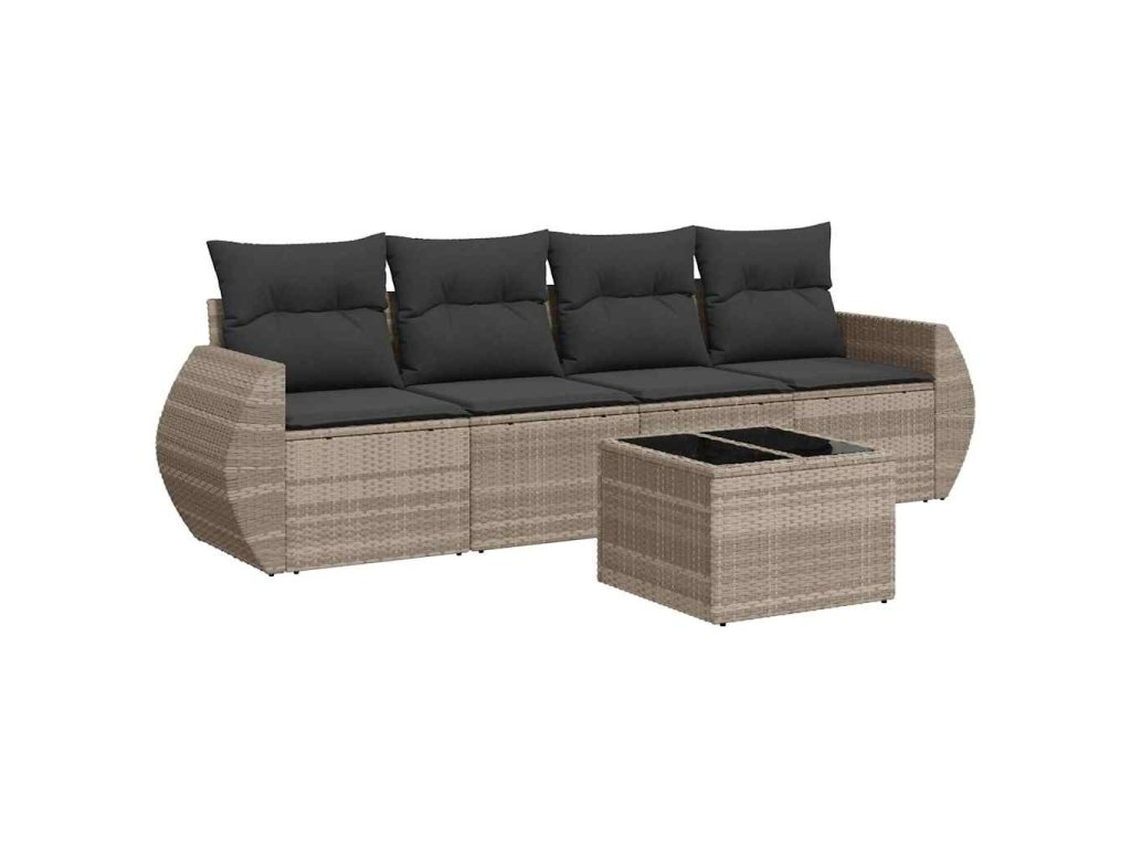 5dílná zahradní sedací souprava a podušky světle šedá polyratan 3221091