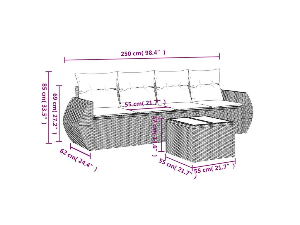 Tato zahradní sedací souprava je dokonalým doplňkem vaší zahrady, terasy nebo dvorku a poskytne vám pohodlné a příjemné místo, kde si můžete povídat s rodinou a přáteli nebo jen tak odpočívat a užívat si pobyt venku.