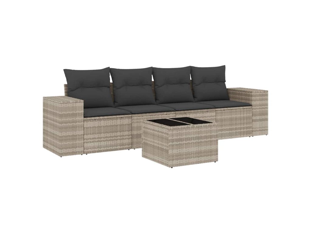5dílná zahradní sedací souprava a podušky světle šedá polyratan 3222291