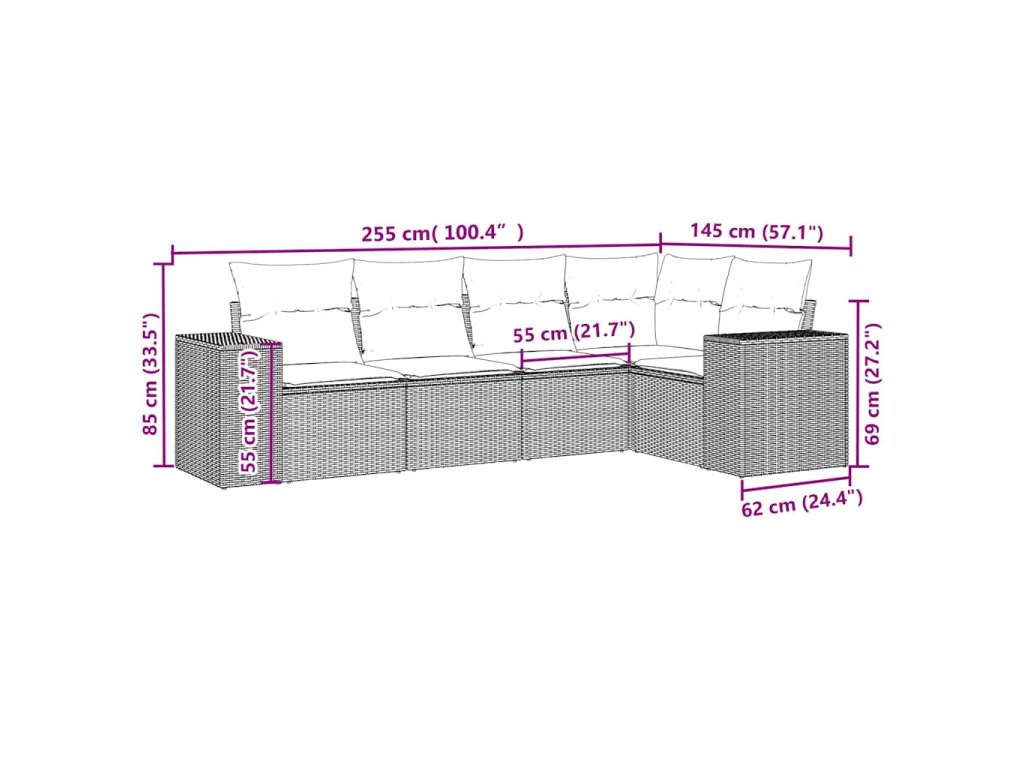 Tato zahradní sedací souprava je dokonalým doplňkem vaší zahrady, terasy nebo dvorku a poskytne vám pohodlné a příjemné místo, kde si můžete povídat s rodinou a přáteli nebo jen tak odpočívat a užívat si pobyt venku.